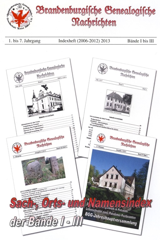 - Brandenburgische Genealogische Nachrichten Indexband (2006-2012)
