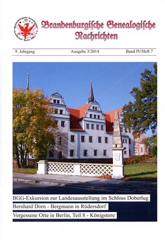 Soeben ist das Heft 3/2014 der Brandenburgischen Genealogischen Nachrichten erschienen.