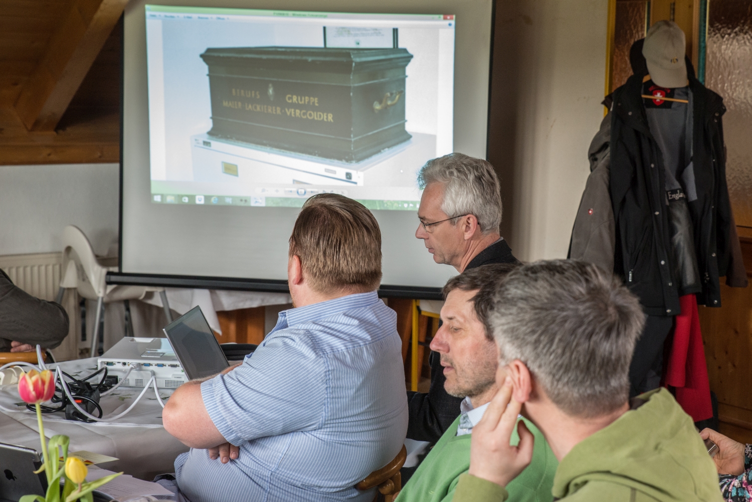 Am Vormittag standen zwei Vorträge auf dem Programm. Begonnen hat Gerd Schwarzlose mit einem Bericht und vielen Bildern zu seiner Forschung über die Potsdamer Malerinnung.