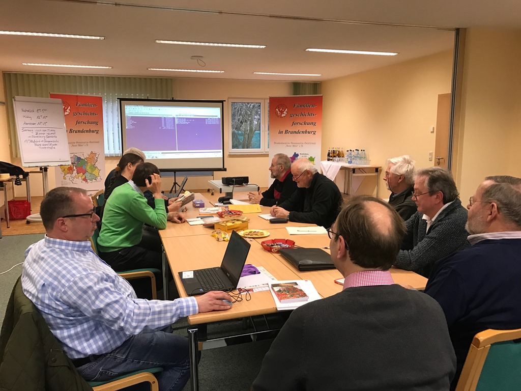 IMG_4020IMG_9987_Klosterkirche alleVom 24.-26. Februar 2017 trafen sich 14 Genealogen zum Seminar in Hohenselchow – Groß Pinnow auf dem Landhof Arche in der Uckermark. Die Teilnehmer/-innen kamen aus ganz Deutschland. Unter ihnen waren Einige zum ersten Mal dabei, andere kamen zum wiederholten Male. Von besonderem Interesse waren z.B. das Thema der Recherche auf diversen Internetportalen sowie die Schriftenkunde. Martina Rohde lehrte uns, Schriften des 18. und 19. Jahrhunderts zu lesen. Wer seine eigenen Dokumente mitgebracht hatte, die bisher nicht entziffert werden konnten, hat Soforthilfe erhalten und fuhr sehr zufrieden mit neuen Informationen nach Hause. Auch die Vielfalt der Möglichkeiten, vor dem heimischen Computer auf diversen Internetportalen Familienforschung zu betreiben, begeisterte die Teilnehmer/-innen. Jörg Schnadt gab weitere Tipps, wie mit dem Einsatz elektronischer Hilfsmittel erfolgreiche Forschungsarbeit betrieben werden kann. Sowohl während des Seminars als auch beim abendlichen gemütlichen Beisammensein konnten zahlreiche Fragen zur persönlichen Forschung geklärt werden. Es fand ein intensiver Austausch unter allen Teilnehmenden statt. Manch einer war nach den zwei Tagen leicht erschöpft auf Grund der Fülle von Informationen und neuen Anregungen für die weitere persönliche Forschungstätigkeit. Das IMG_4040sehr gute Essen und die hervorragende Rundumbetreuung auf dem Landhof Arche machten das Wochenende zu einem unvergesslichen Erlebnis. 20170224_195544_SeminarAm Sonntagnachmittag fuhren wir gemeinsam nach Angermünde und erhielten durch Steffen Tuchscherer interessante Informationen und Einblicke in das Franziskaner Kloster. Bei anschließendem Kaffee und Kuchen fand das Seminar zum Ausklang mit der Verabredung, uns in einem Jahr wieder zu sehen. Schließlich hatten wir so viele Ideen, die wir nun umsetzen wollen und es gibt noch viele weitere Themen, die im nächsten besprochen werden wollen.