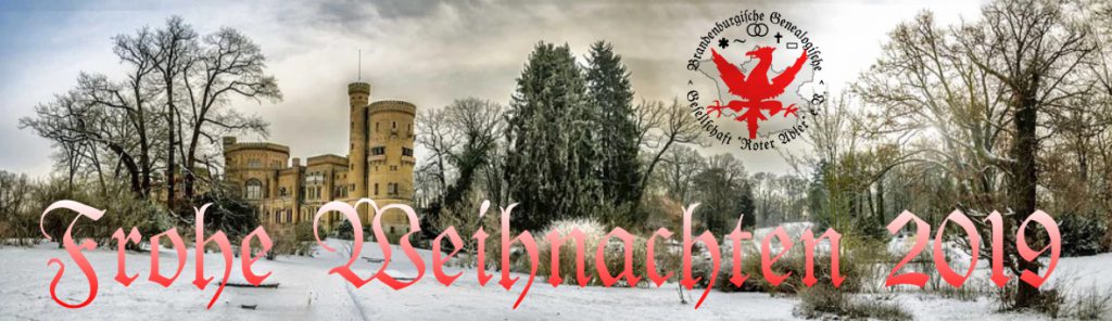 Die Brandenburgische Genealogische Gesellschaft “Roter Adler” e.V. wünscht allen Mitgliedern, befreundeten Vereinen und Tauschpartnern sowie Freundinnen und Freunden der regional- und familiengeschichtlichen Forschung in Brandenburg ein schönes und besinnliches Weihnachtsfest im Kreise der Familie und Freunde!