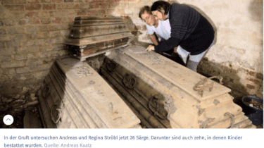 Insgesamt 26 Särge der Familie von Bredow lagern in der Gruft unter der Kirche in Wagenitz. Die Särge werden jetzt restauriert, darunter auch der von Ernst Wilhelm Reichsgraf von Bredow. Zudem wird die Gruft saniert.