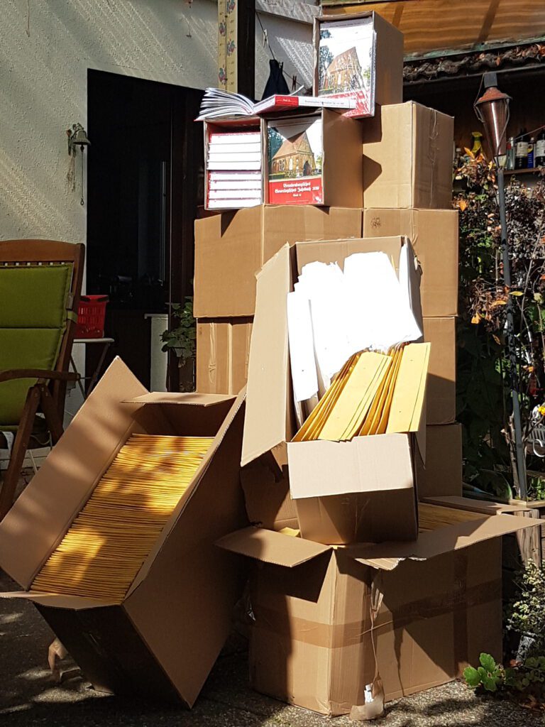 Die Versandtaschen liegen vollständig adressiert und frankiert schon eine Weile bereit. So gilt es nun, das Wochenende zu nutzen, alle Bücher einzutüten, damit sie am Montag zur Post gebracht werden können.