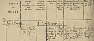 Abb. 2: Ausschnitt aus einer Judentabelle (1805): Mitglieder einer Schutzjudenfamilie aus Landsberg an der Warthe (Neumark)