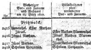 Abb. 6: Annahme fester Familiennamen durch Juden in Pritzwalk