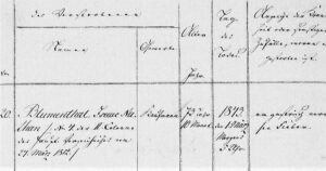 Abb. 3: Auszug aus einem Sterberegister (1843), Isaac Nathan BLUMENTHAL aus Pritzwalk